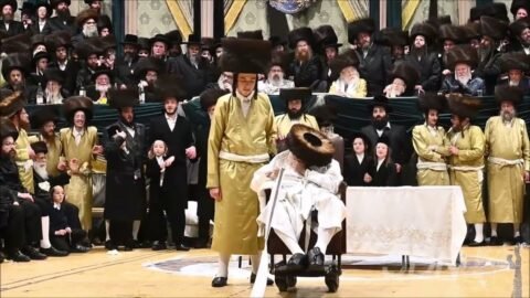הקהל בריקוד ואתם תהיו לי ממלכת כהנים במהלך שמחת החתונה לבן כ”ק מרן האדמו”ר שליט”א