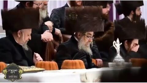 Viznitz Rebbe R’ Mendel At The Bar Mitzvah Of Mezibuz Rebbe’s Son