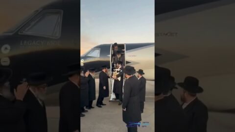 האדמו”ר מסאטמאר ביים אפשטייגן פונעם פריוואטע פליגער ביים אנקומען קיין ארה”ק